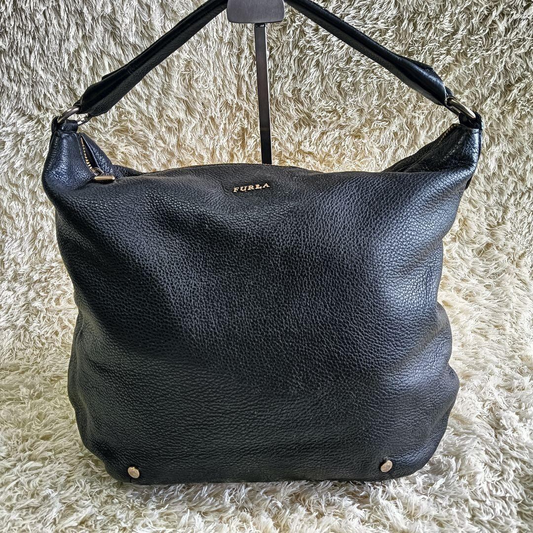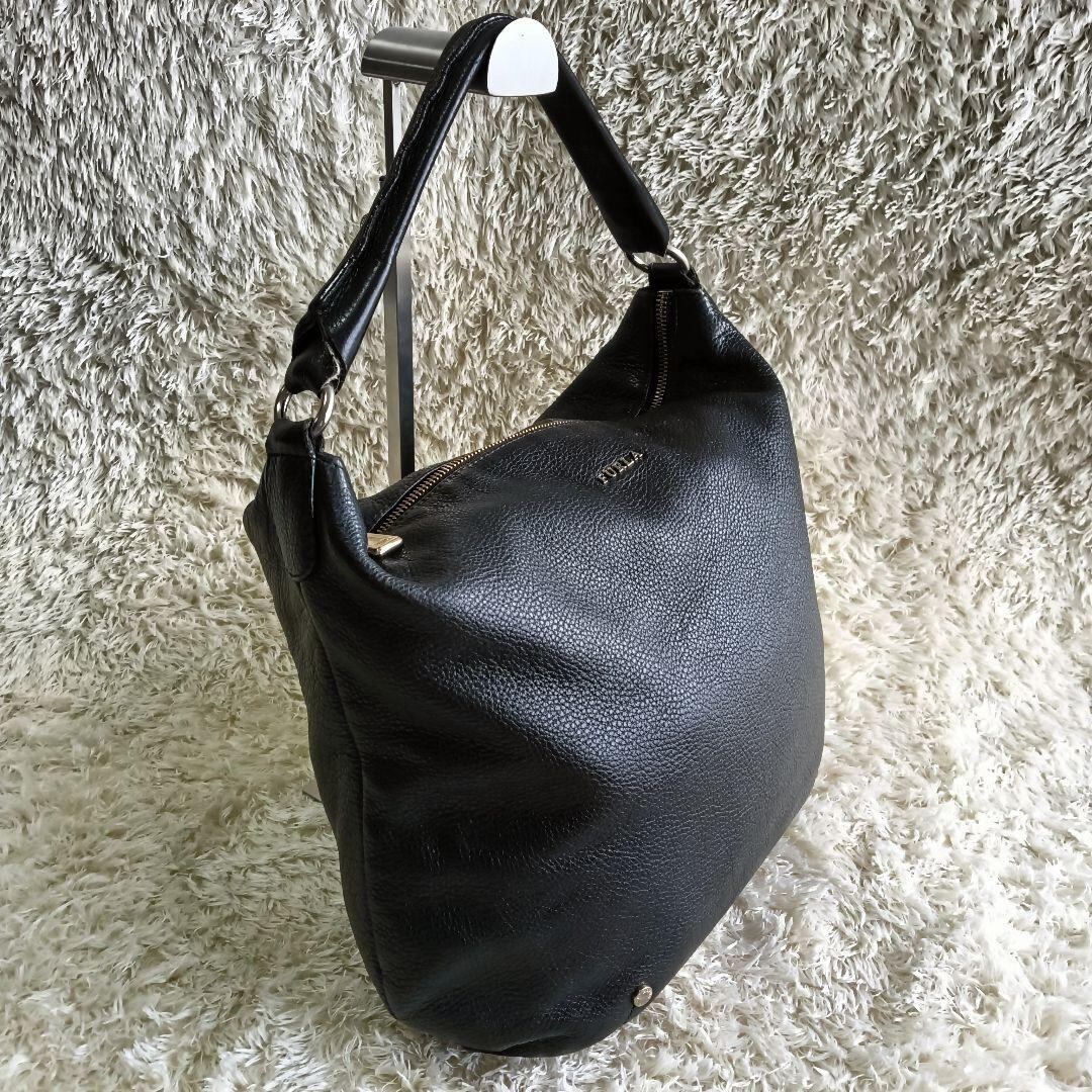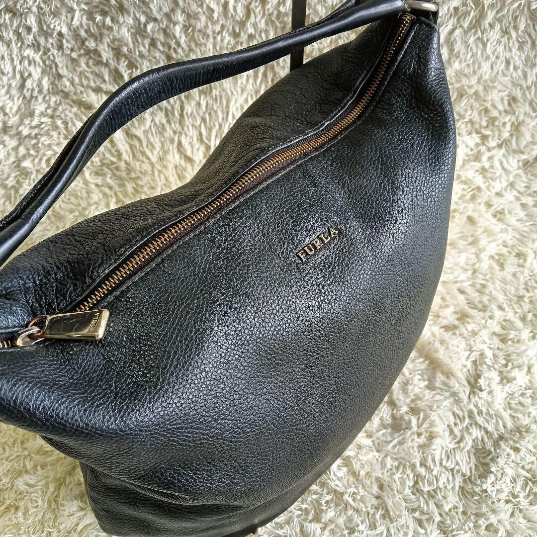 FURLA フルラ ショルダーバック シボ革 肩掛け ブラック 黒 ロゴ 鞄レザー