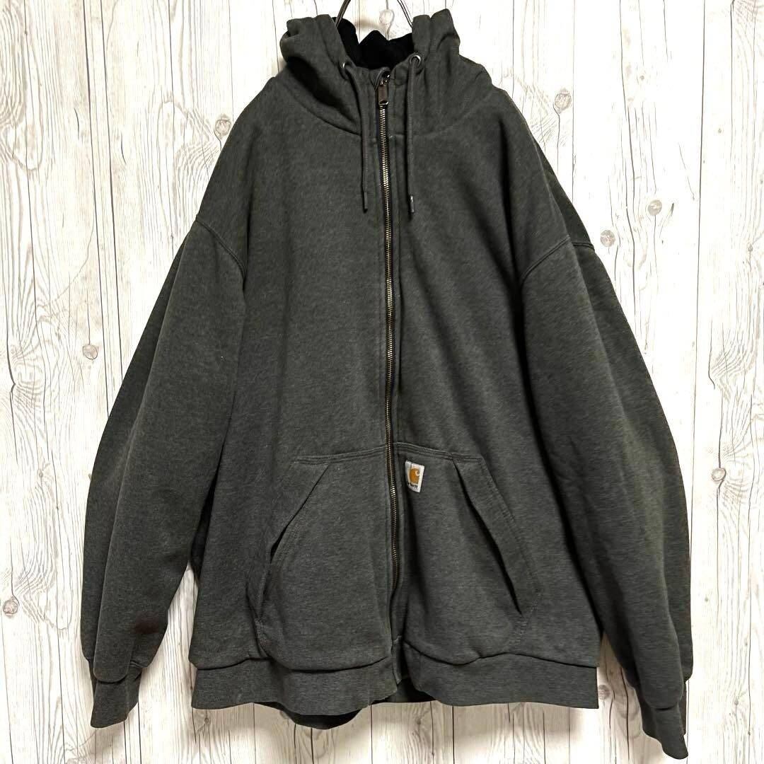 カーハート★フーディ―ジップパーカー スウェット メンズ2XL グレー 大きめ